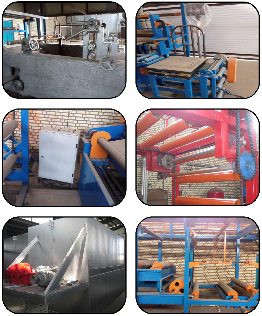 6. خط کامل تولید با مشخصات ذیل و سرعت تولید 2500-2000 متر مربع بر ساعت (بسته به نیروی انسانی)