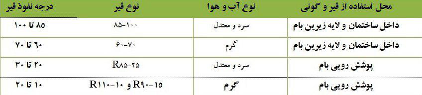 می بایست با توجه به نقطه نفوذپذیری و نقطه نرمی قیر مورد استفاده در عایق های رطوبتی پیش ساخته انتخاب شود. هر چه نقطه نرمی یا دمای ذوب قیر بالاتر باشد بدلیل سازگاری با دمای هوای بالاتر قیر مناسبتری جهت تولید عایق های رطوبتی پیش ساخته خواهد بود. همینطور نقطه نفوذپذیری که تعیین کننده میزان سختی قیر است، چنانچه بالاتر باشد میزان سازگاری آن با هوای سرد و دماهای پایین بیشتر خواهد بود.