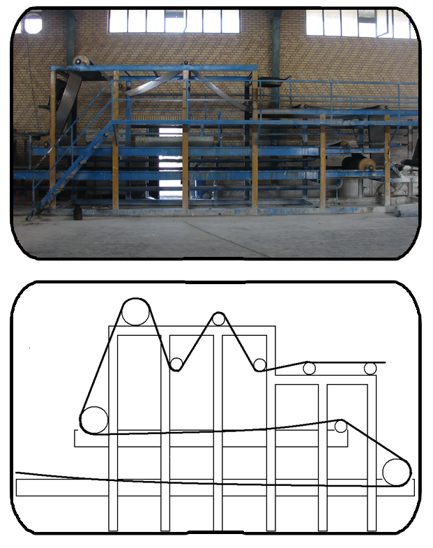 6-8 قسمت خشک کن با غلطکهای مربوطه و فن های مربوطه که روی تشت آب مستقر می باشد.