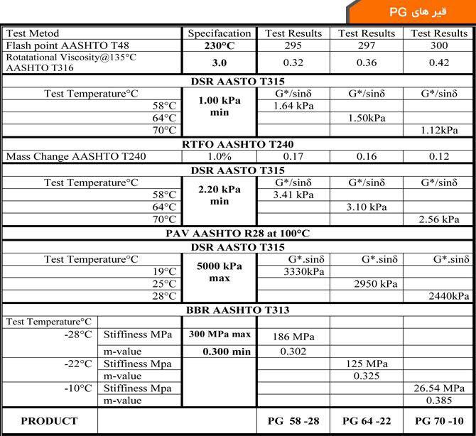 معنی اعداد جلوی PG مانند 6422 این است که آن، قیر از دمای -22 تا دمای +64 درجه سلسیوس عملکرد مناسبی دارد.