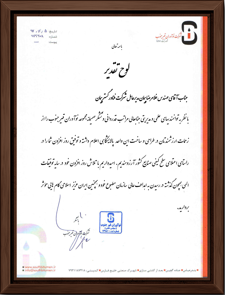 001 طراحی ، مشاوره و راه اندازی کارخانجات نسل سوم تولید انواع قیر