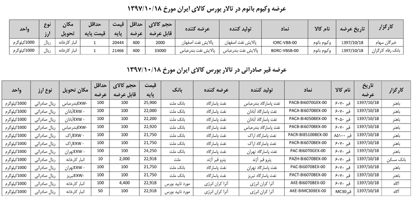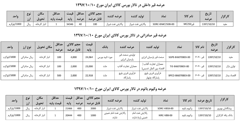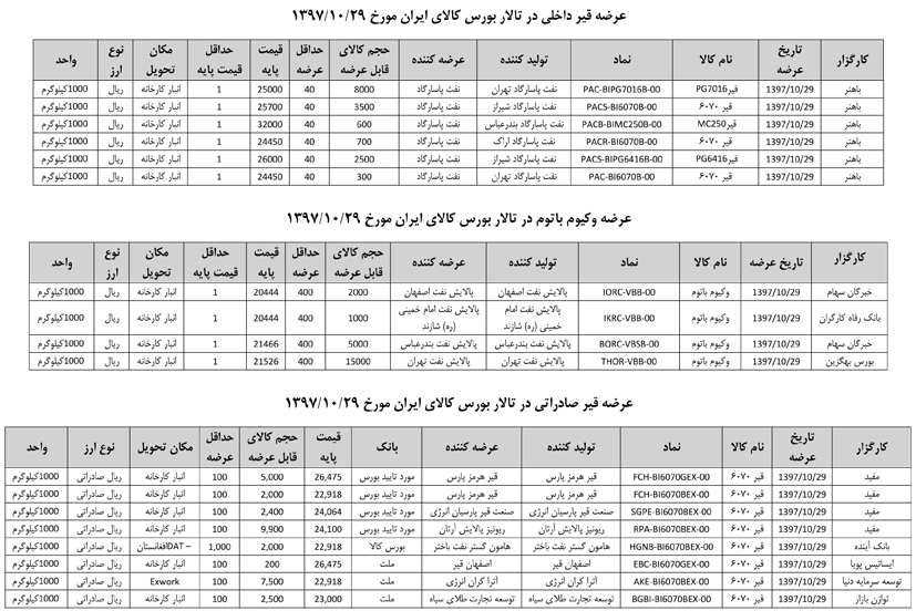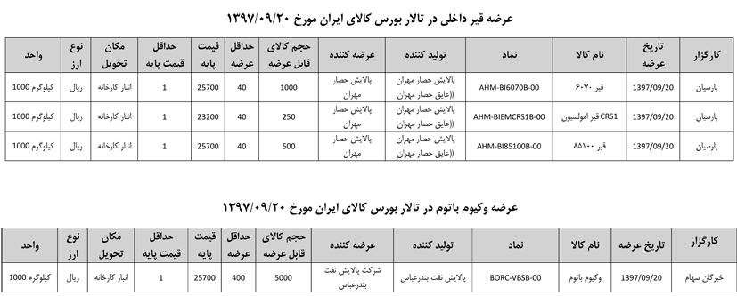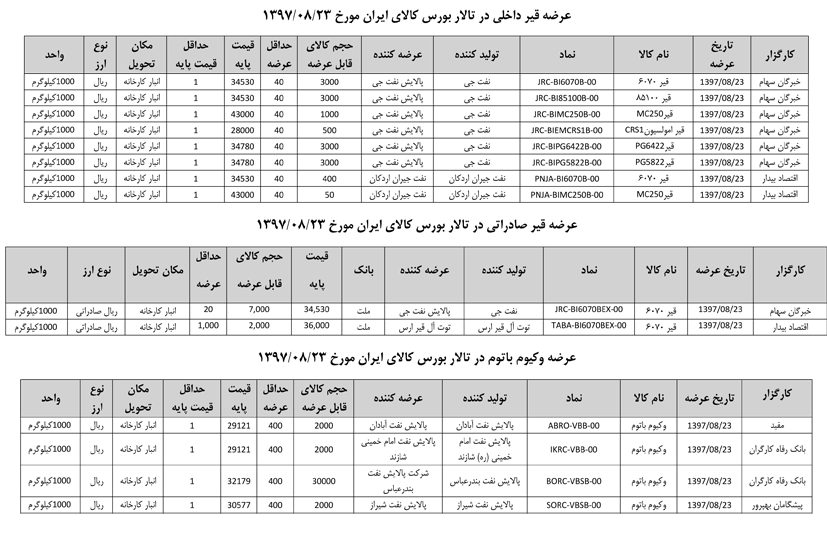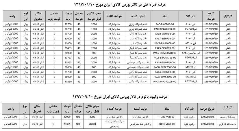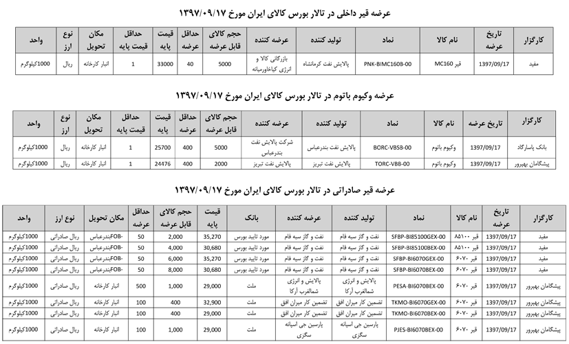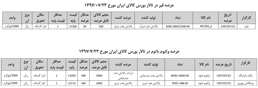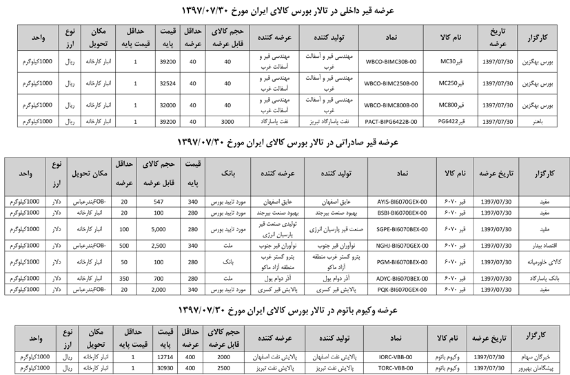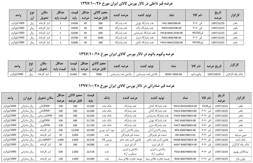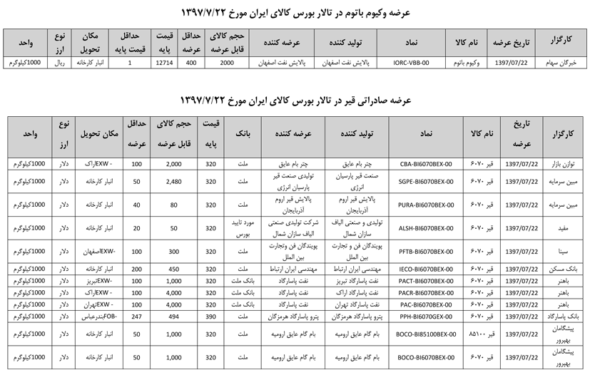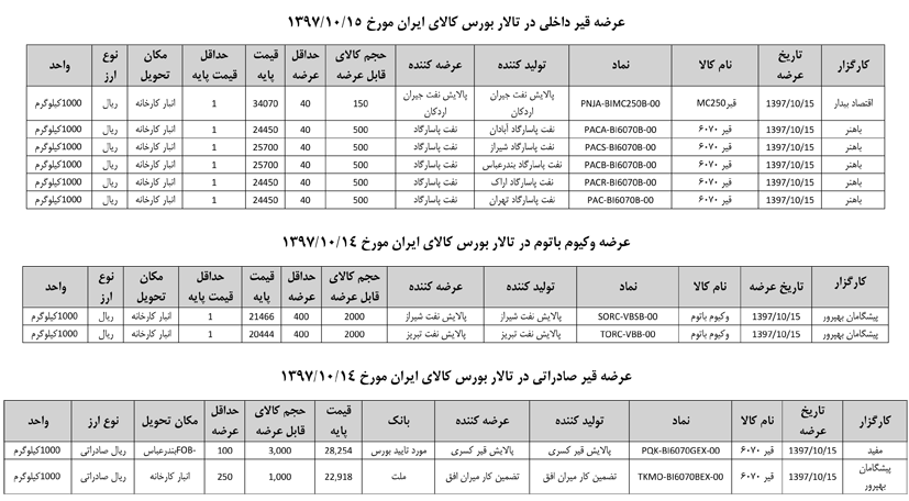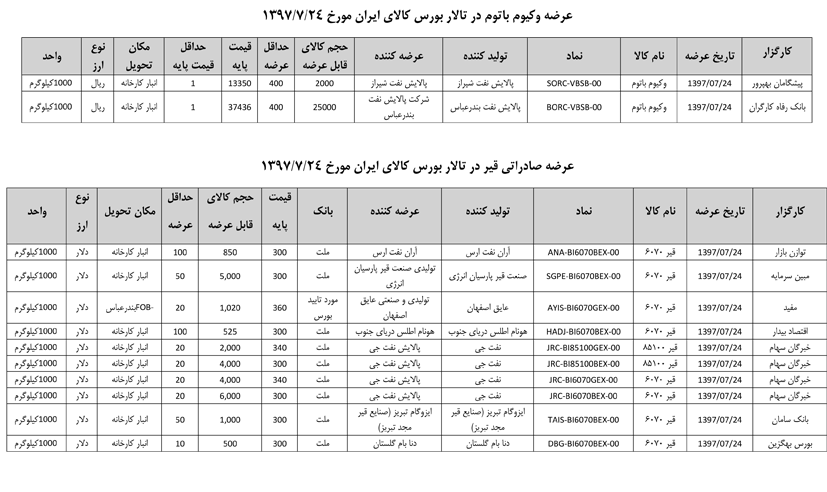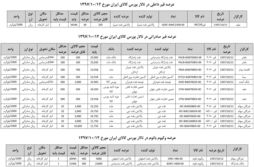 013 اطلاعیه عرضه قیر و مشتقات نفتی در تالار بورس ایران