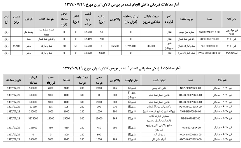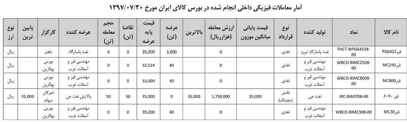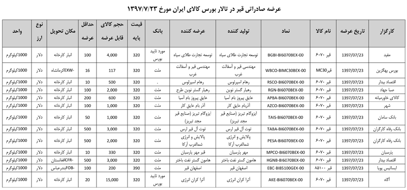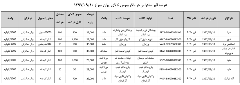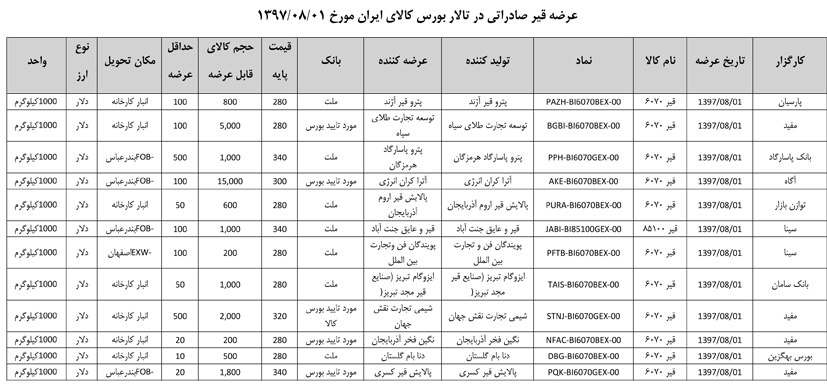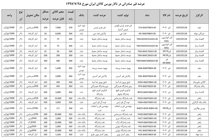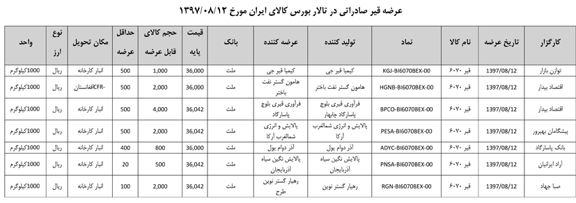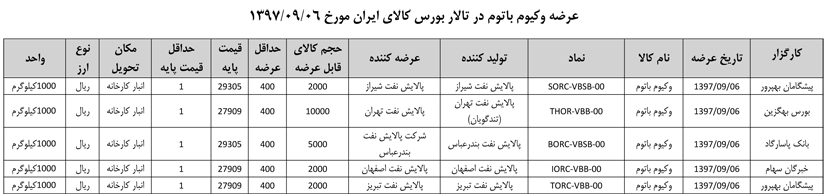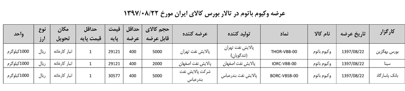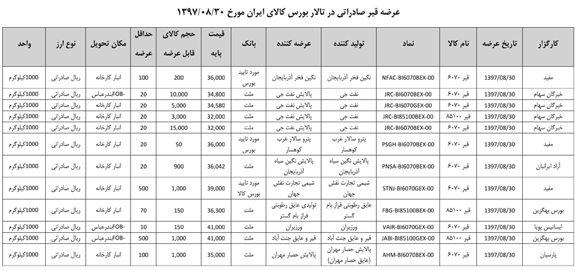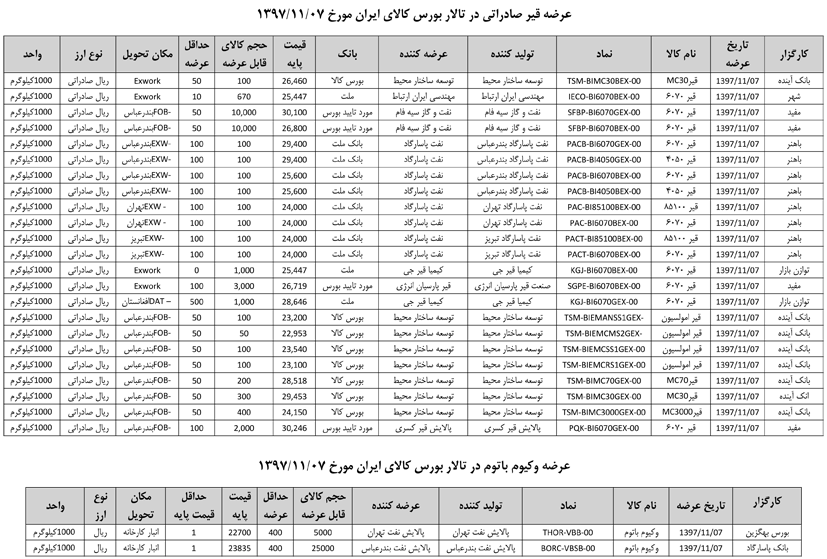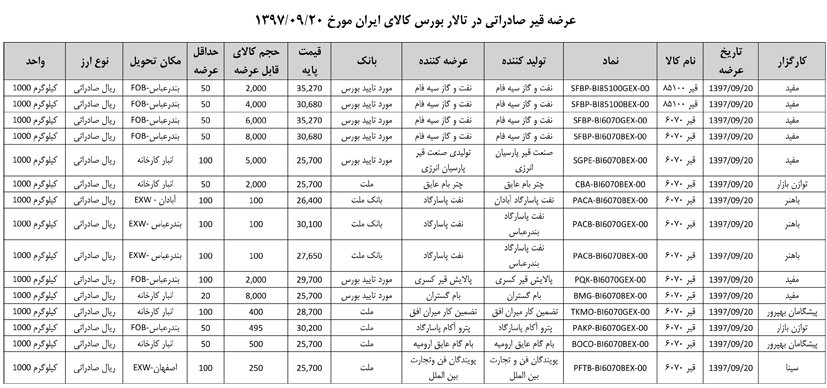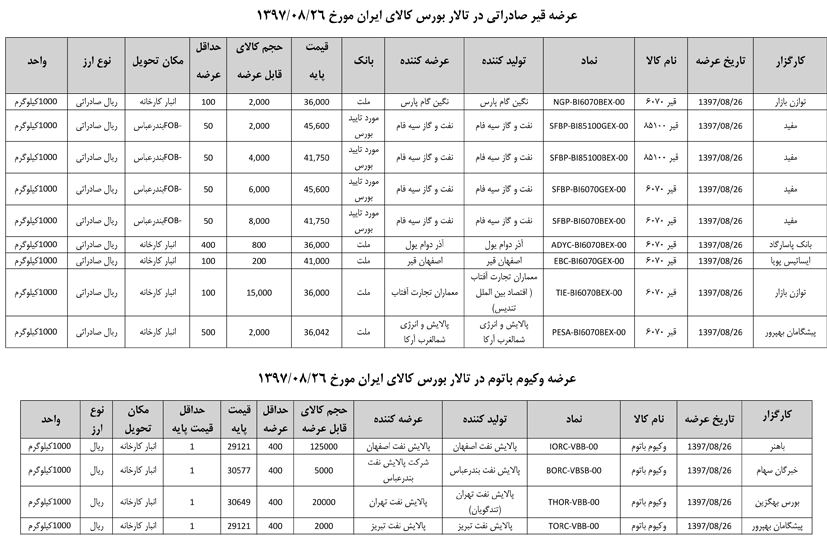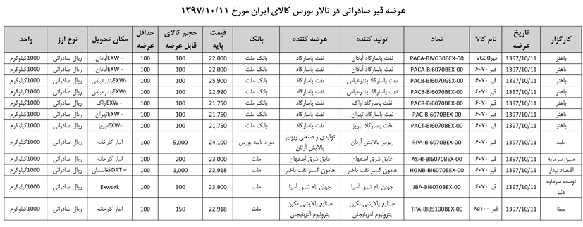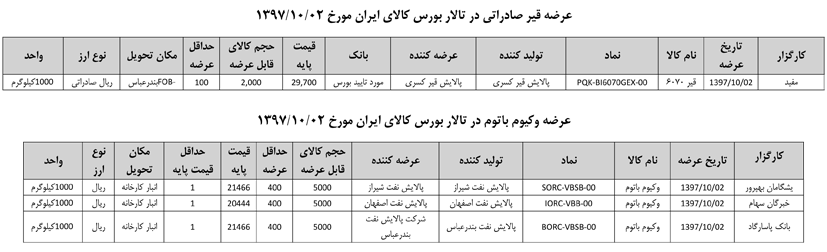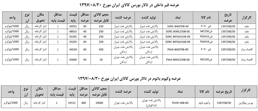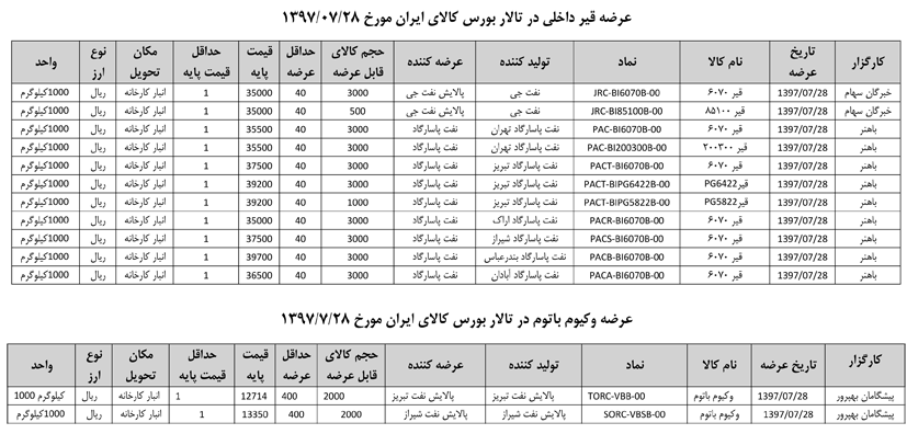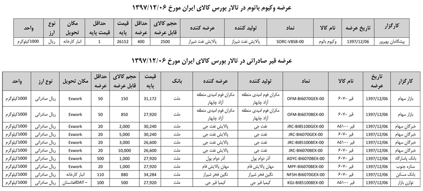 013 اطلاعیه عرضه قیر و مشتقات نفتی در تالار بورس ایران